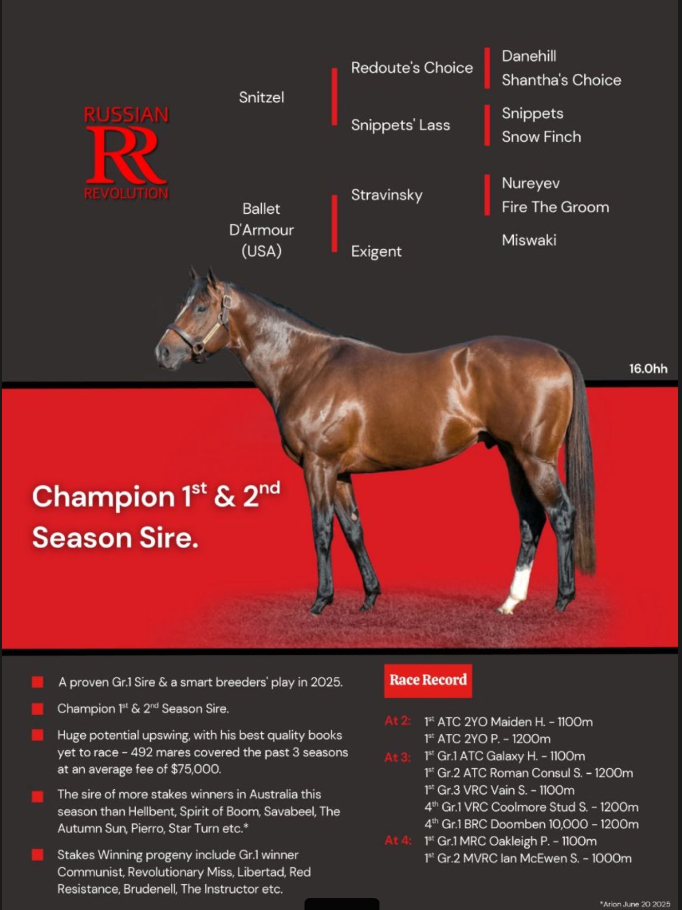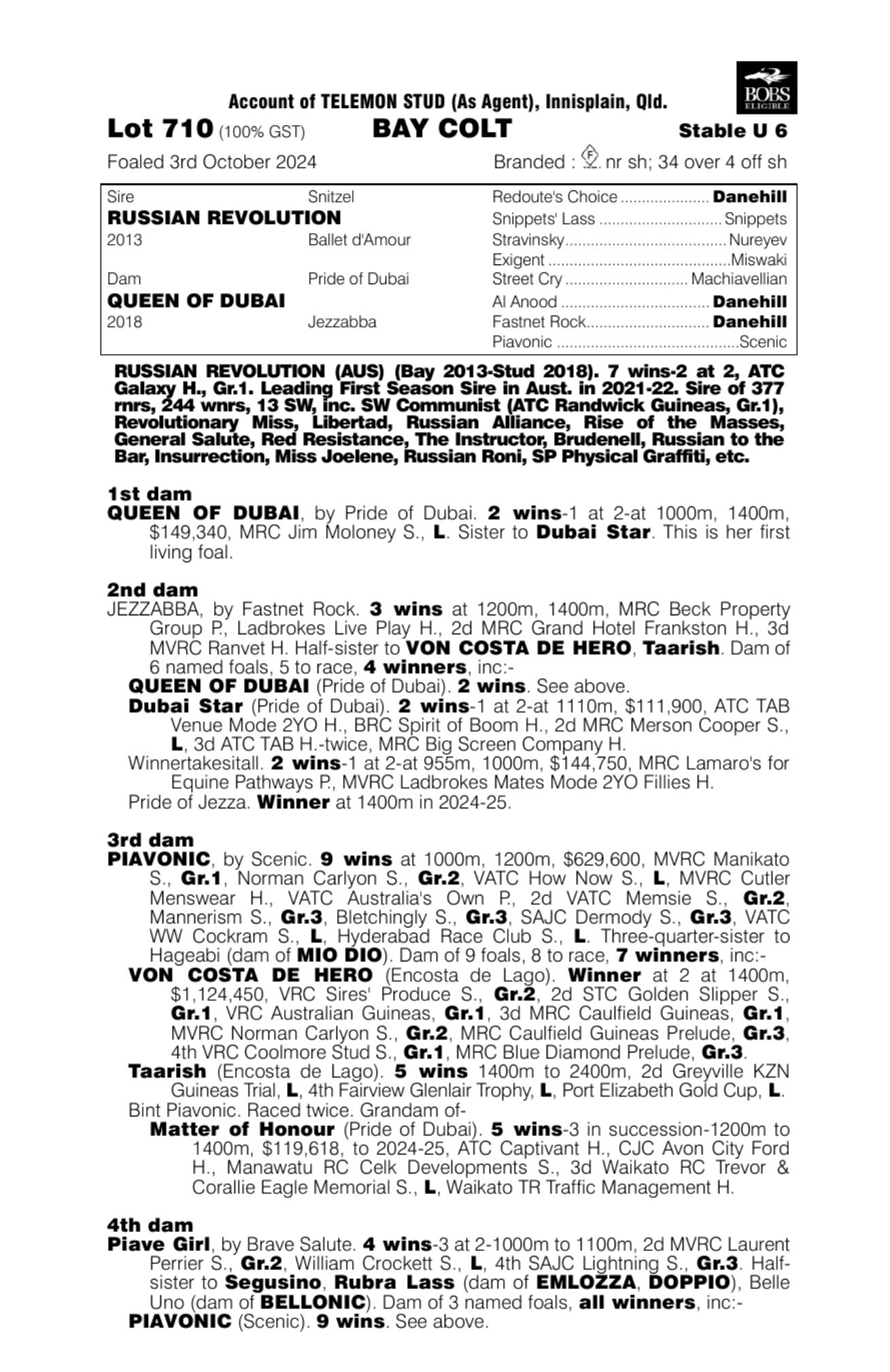 Beautiful, strong colt by Russian Revolution from Stakes winning mare Queen of Dubai.